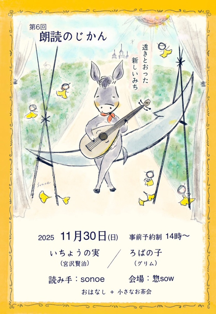 sonoeさんによる朗読です。朗読の後、ちいさなお茶会